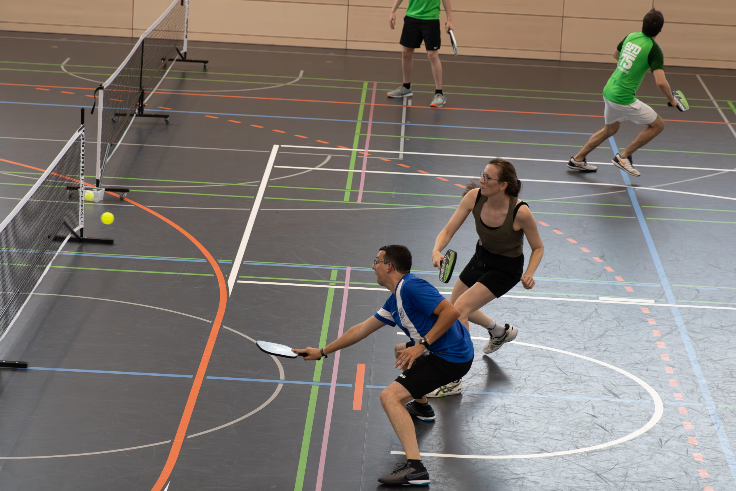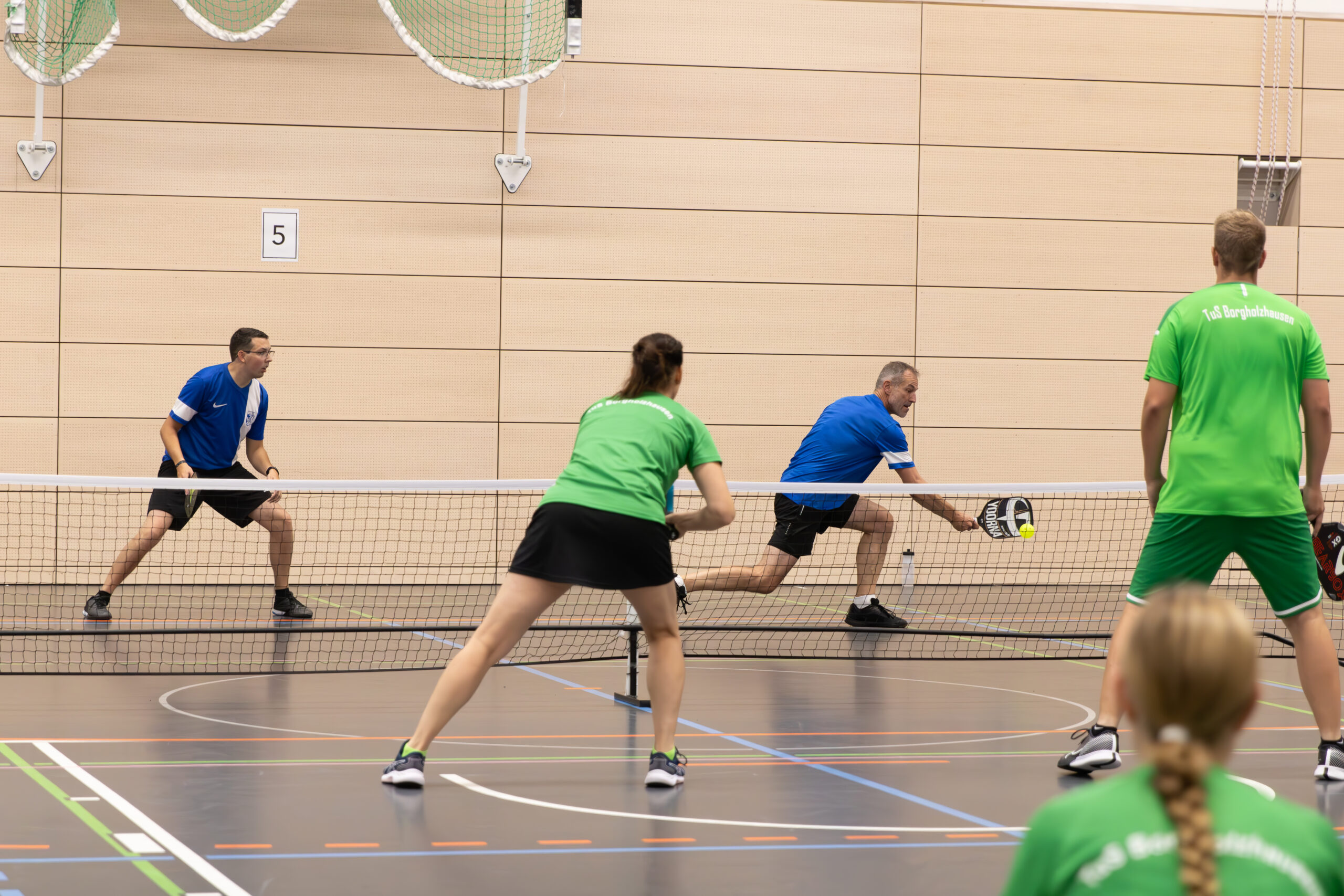 Bereits zu Beginn des Tages wurde die Bühne für dieses unvergessliche Ereignis gesetzt, als Dirk Sültenfuss, Vertreter des Sportausschusses Düsseldorf, die Eröffnung in der Sporthalle Schorlemer Str. vornahm. Die Spieler zeigten auf dem Court beeindruckendes Können und Leidenschaft, während draußen vor der Halle Zuschauer die Möglichkeit hatten, Pickleball selbst auszuprobieren.